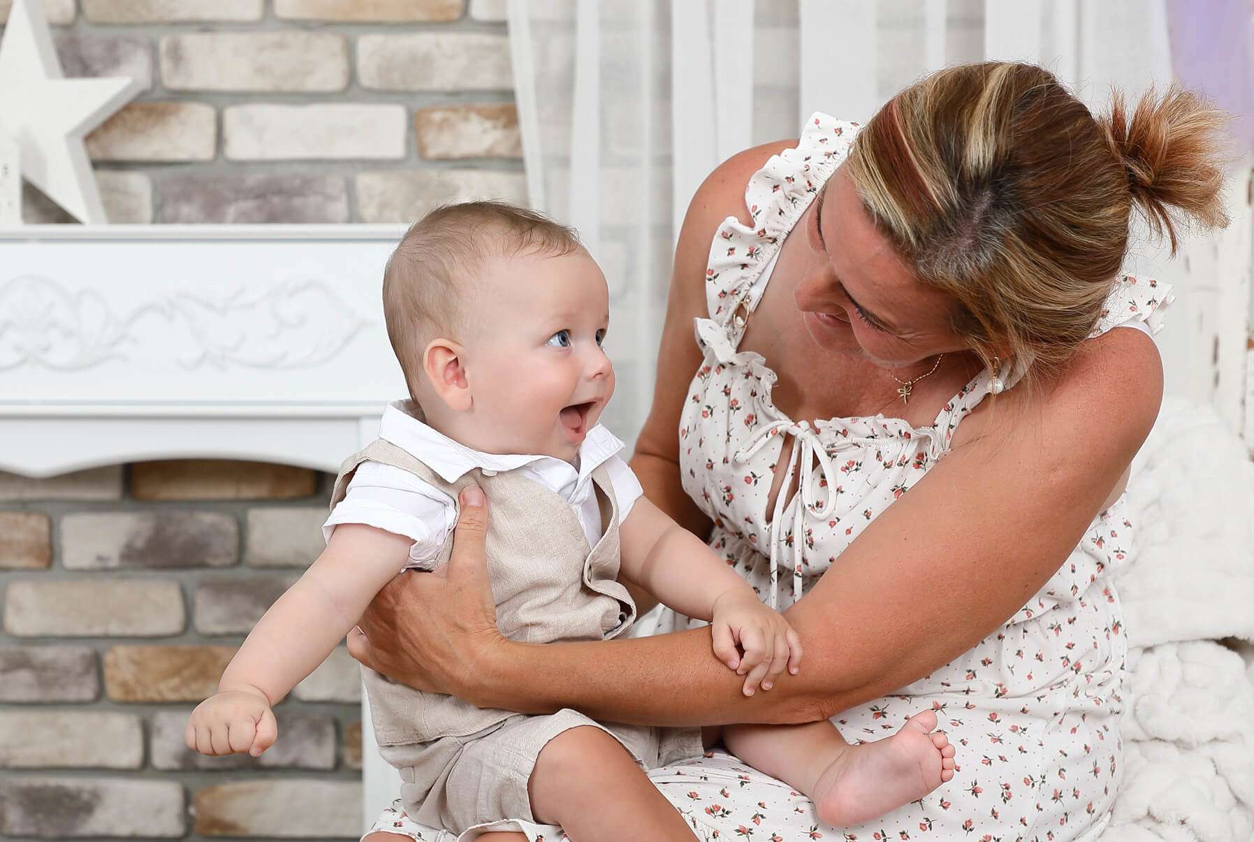 Pre deti a bábätká máme pripravených niekoľko fotorekvizít a hračiek, ktoré krásne ozvláštnia výsledné fotografie. Rodičia tiež môžu deťom priniesť hračky z domu, aby mali deti na svojich fotografiách aj svoju obľúbenú hračku. Pri fotografovaní v ateliéri meníme pozadia, aby ste mali rôzne varianty fotografií, a drobca si u nás môžete bez problémov prezliecť do iného oblečenia.
